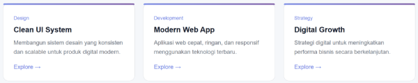 Sebaliknya, dengan card UI, kamu bisa membagi informasi menjadi bagian kecil yang lebih nyaman dibaca. Selain itu, tampilan juga jadi lebih profesional. Bahkan, user bisa langsung fokus ke poin penting seperti produk, layanan, atau CTA.