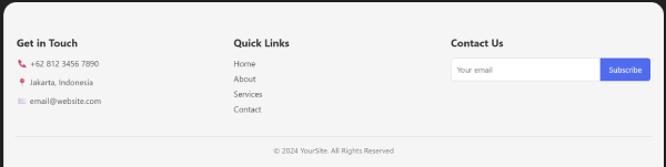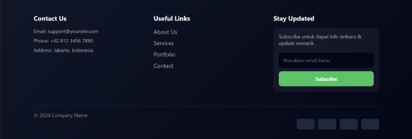 Terakhir, jangan lupa tambahkan CTA (Call To Action). Contohnya seperti tombol subscribe atau kontak. Dengan cara ini, footer tidak hanya informatif, tapi juga bisa meningkatkan interaksi user.